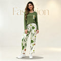 000 Olive Green plain full selives Tshirt flower pocket with Printed flowers Trouser