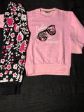 0000 Baby Pink Glasses Printed Sweatshirt With Floral Printed Fleece Trouser Tracksuit For Kids