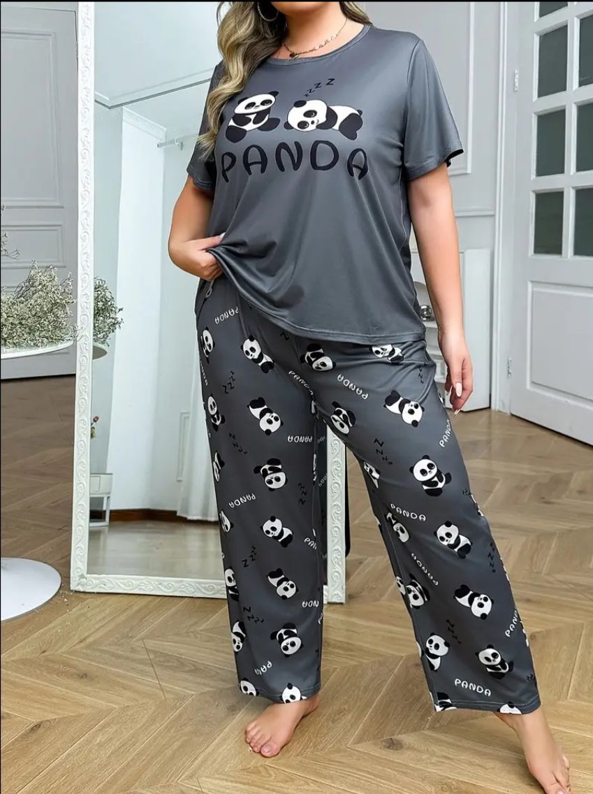 0000 Grey Panda Printed Half Sleeves T-shirt With Panda Printed Pajama Suit