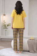 0000 Yellow Circo Duck Printed Half Sleeves T-shirt With check Printed Pajama Suit